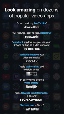 Use the amazing camera in your phone as a pro-quality webcam, and stand out on your next video call, live stream, or online event with Camo.